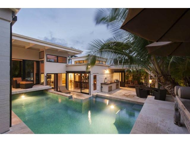 This chic Diamond Head head home was just listed for sale.  The home has four bedrooms and 3 bathrooms in 3228 square feet of interior space.  Built in 2010 it has modern architectural style.  Private and serene the home has generous outdoor spaces.  The home spills out to the lanais and to the heated salt water pool.  The contemporary design with the high ceilings create a peaceful place.  Clean lines with a light effortless palette make this a special home.  The kitchen is open, welcoming and has beautiful wood cabinetry and top of the line stainless steel appliances.  Tile flooring throughout most of the home keeps the temperature cool and comfortable.  This unique Diamond Head home for sale has a list price of $3,388,000.