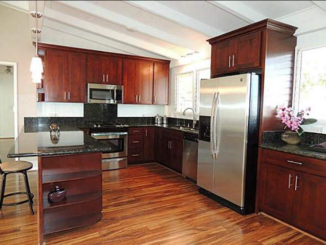 This beautiful Kailua home came up for sale in Enchanted lake with 3 beds – 2 bath and a pool has 20024 square feet of living space.  The home has been recently remodeled  with Koa Laminate flooring, cherry cabinets, granite counter tops, stainless steel appliances which includes a gas range.  Two large living areas provide plenty of space for a large family and can accommodate a dining room.  Little garden pond on the side of the property makes an intimate relaxing space while the large deck surrounding the newly tiled pool is perfect for entertaining large groups.  The property is fully landscaped with a sprinkler system for ease of care.  The clean neutral palette and use of wood and stone throughout the home makes it easy and welcoming to decorate and the great street appeal would make anyone proud to entertain at home.