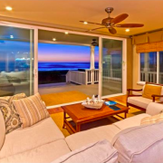 This lovely oceanfront home in Makaha is for sale for $1,425,000. The spacious home has 6 bedrooms and 3 bathrooms in 2906 square feet. With a 662 square feet of lanai, there is plenty of room to live outside.  The interior has beautiful hard wood floors. There are high ceilings throughout the home and central air conditioning. There is also a security system in place. The kitchen has solid wood cabinetry and beautiful granite counter tops. The bathrooms are spacious and the use of wood and wood detailing gives a warm comfortable feeling in the home. The garden is lush and tropical. The rolling lawn is dotted with palm tress and ends dramatically at a seawall where you can view the gorgeous ocean and surf. This is a real tropical oasis.  Surf right off of your back yard! During the winter months watch whales and porpoise swim by.