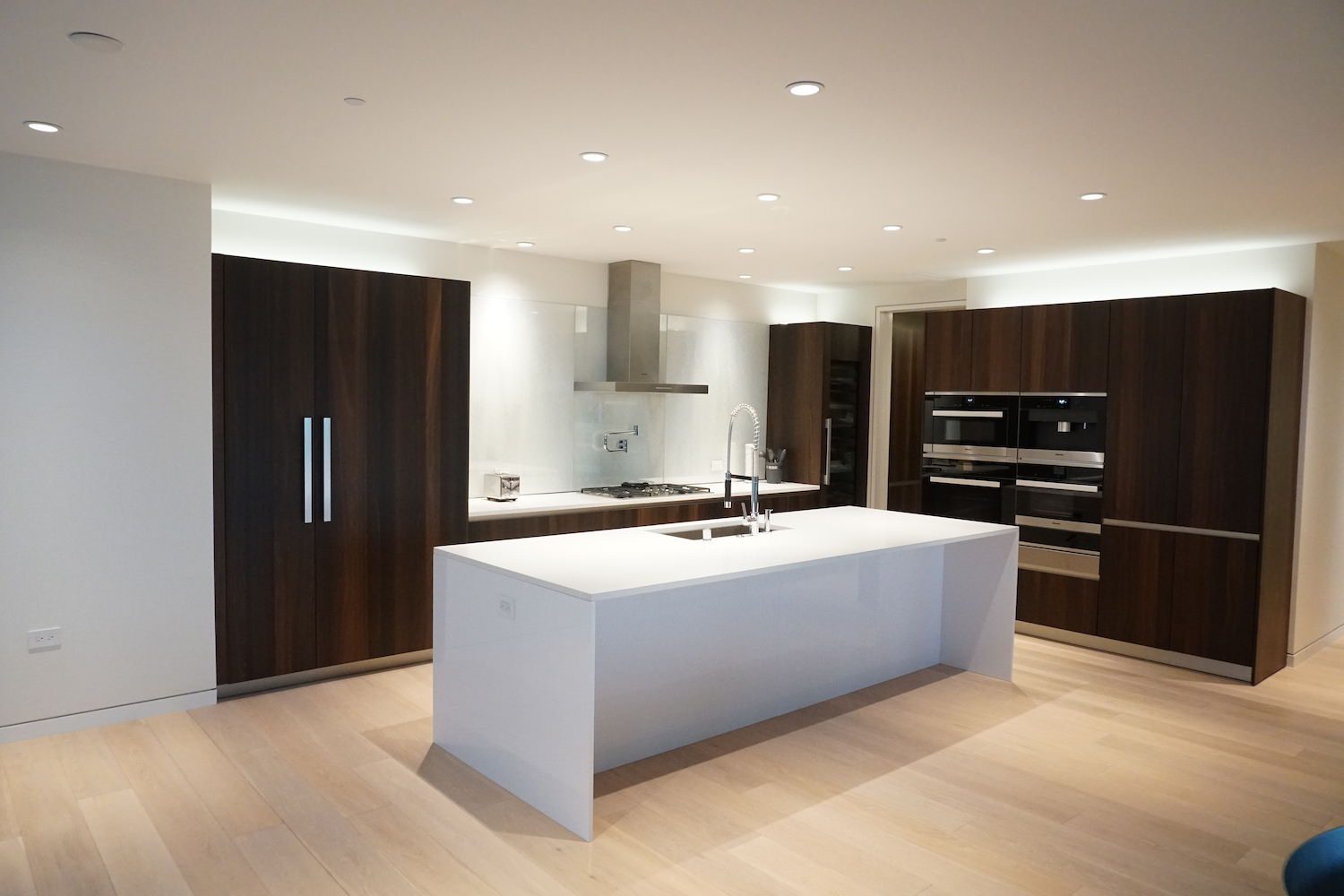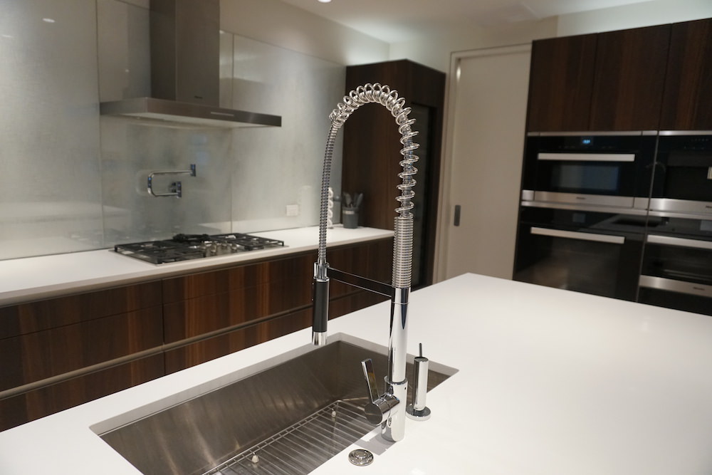 The Waiea 500 condo has a beautiful luxury kitchen. It includes Miele appliances, Dornbracht fixtures and quartz countertops.