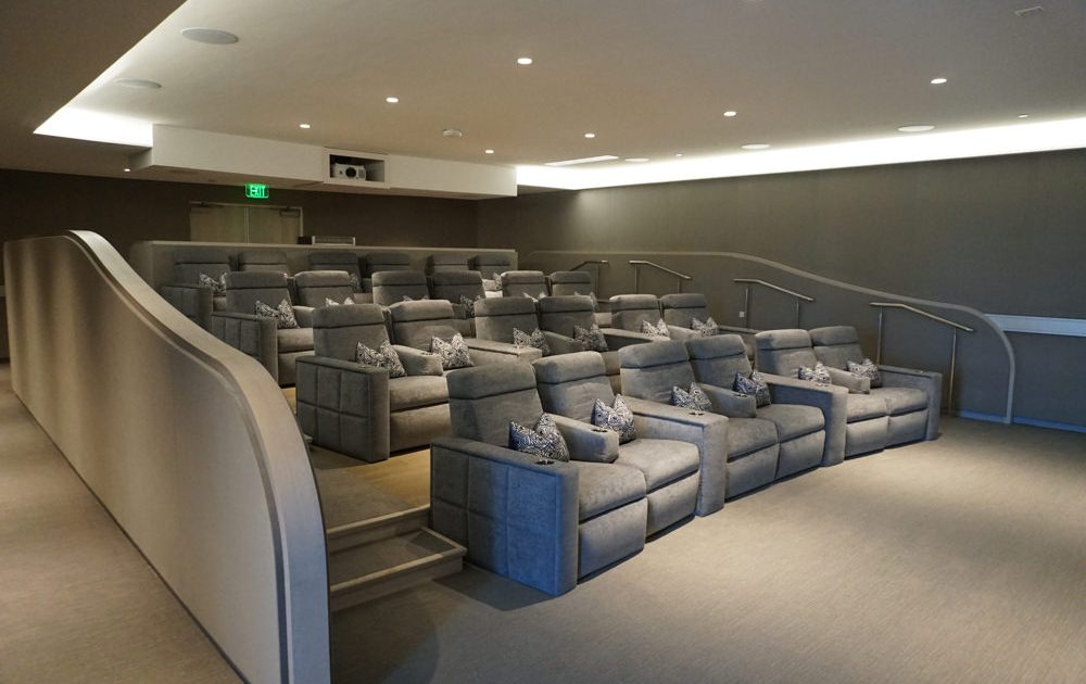 Relax in theater comfort and the space also includes a Steinway grand piano
